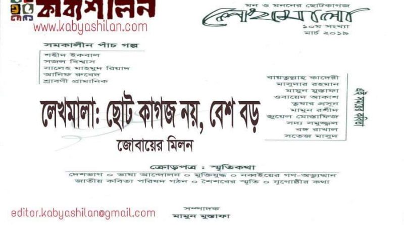 ইদানিং ভালো একটি গল্প বা ভালো একটি কবিতা বা ভালো একটি মুক্তগদ্য অথবা প্রবন্ধ হাতের কাছে পাওয়া সহজ কথা নয়। ভালো কাজ হচ্ছে না তাও আবার নয়। পুরো সপ্তাহান্তে যে কয়েকটি ‘সাহিত্য সাময়িকী’ দৈনিকের সঙ্গে প্রকাশ পায় তার সবকয়টি হাতড়িয়েও একটি মনঃপুত রচনা পাওয়া দুষ্কর। এখানেও যে হচ্ছে না তাও কিন্তু বলছিনা। মাঝে মাঝে মুগ্ধতাও থাকে। তবে নগন্যতাকে উঁচিয়ে বলার কিছু আছে বলে মনে হয় না। ‘লিটলম্যাগ’-এ সাহিত্যচর্চার ক্ষেত্র এখানে সুবিশাল, বলিষ্ঠ, মজবুত, পরিশীলিত। লিটলম্যাগের অবস্থাই-বা বর্তমানে কতটুকু সুখপাঠ্যের তা একটি প্রশ্ন। কতটি লিটলম্যাগ পাঠ করলে কতটি মানমম্পন্ন কবিতা, গল্প, প্রবন্ধ, আলোচনা মনানন্দে ধরা দেবে তা কে বলতে পারে নিশ্চিত করে? আমাদের এখানে লিটলম্যাগের আন্দোলন আজকের বা গতকালের বা গতপরশুর নয়, সুদীর্ঘ সময়ের। এই সুদীর্ঘ সময়ে কতটুকু সমৃদ্ধ হয়েছে চেষ্টাগুলো? হাতে হাত রেখে এখানে লিটলম্যাগ আন্দোলন দিনকে দিন এগিয়ে চলেছে বটে, তবে গুণগত মান আর যৌলুশ নিয়ে এগিয়ে চলার সংখ্যাটা একেবারেই ছোট। চাইলে হাতে গুণে গুনে বলে দেয়া যাবে সংখ্যাটা। বাকি অনেকগুলোকে হেয় করার জন্য নয়, সত্য বলতে গিয়ে বলতেই হয় তারা তেমন ভালো করতে পারছে কই! এক্ষেত্রে চেষ্টার বা সীমাবদ্ধতার সীমা উৎরে যাওয়ার যে শ্রম নেই তা অন্তত বলা যাবে না। প্রায় নিয়মিতভাবে লিটলম্যাগ (বাজারের সব না হোক অধিকাংশ) পাঠের অভিজ্ঞতা থেকে বলতে পারি, কিছু কিছু ছোটকাগজ কাজের মাধ্য দিয়ে তার স্বাতন্ত্রিকতা, নান্দনিকতা ও বৈচিত্র্যের মাধ্যমে পাঠক হিসেবে আমার আগ্রহ বাড়িয়ে দেয়। শুধু রঙের চাকচিক্য বাড়িয়ে ভোক্তার কাছে পণ্য বিক্রয় করা গেলেও পাঠকের কাছে কিন্তু সাহিত্যকে গছিয়ে দেওয়া যায় না। সু-পাঠক বা নিয়মিত পাঠক মুখ রক্ষার্থে দু’একটি অনুরোধ রাখলেও দিনশেষে গোজামিলকে সে ছুঁড়ে ফেলে আস্তাকুঁড়ে। সত্যিকার পাঠক অর্জন করতে চায়। চিমটি চিমটি করে বোধের বালু জমিয়ে নিজেরক ঝিনুকসম বানাতে চায়। তারা সমৃদ্ধ হতে চায়। তই বোধের মাণিক্য যেখানে থাকে পাঠক সেখানে ফিরে ফিরে আসে বার বার। ঠিক এমনই যখন অবস্থা, তখন পাঠ করলাম মন ও মননের ছোট কাগজ ‘লেখমালা’র ১০ম সংখ্যা।